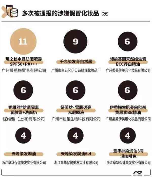 南都大數(shù)據(jù)研究院統(tǒng)計(jì)發(fā)現(xiàn),僅去年以來,國家及地方藥監(jiān)部門抽檢發(fā)現(xiàn)的2000多批次不合格化妝品中,經(jīng)企業(yè)確認(rèn)為假冒或否認(rèn)生產(chǎn)的涉嫌假冒化妝品就有近400批次。這些涉假化妝品具有愛充大牌、違法添加、在小城市出沒等特點(diǎn)。