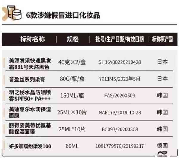 其中,“普盈絲系列染膏P13”(80g/瓶/盒,7011MS/2020年5月)標(biāo)稱日本資生堂出品。經(jīng)上海市浦東新區(qū)市場(chǎng)監(jiān)督管理局現(xiàn)場(chǎng)核查,經(jīng)銷企業(yè)聲稱是假冒產(chǎn)品。該產(chǎn)品在國家藥監(jiān)局進(jìn)口化妝品數(shù)據(jù)庫中也查詢不到。
