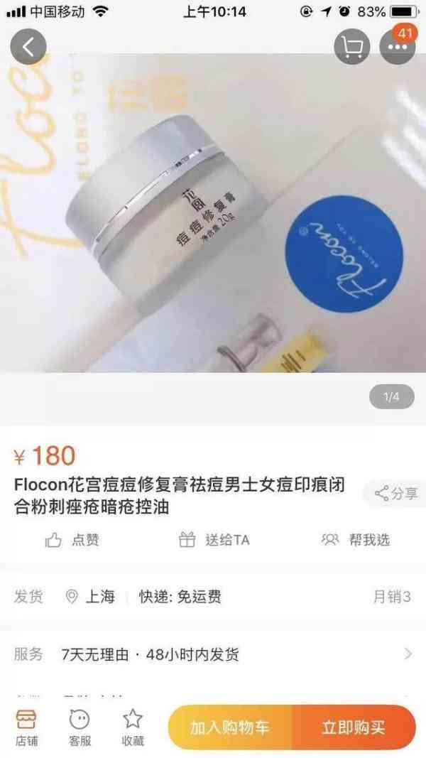 以“花宮痘痘修復(fù)膏”為例,前日(19日),淘寶有四個(gè)商家在售。四家的客服均確認(rèn),這款產(chǎn)品沒有外包裝,沒有生產(chǎn)企業(yè)和標(biāo)準(zhǔn)文號(hào)等信息。