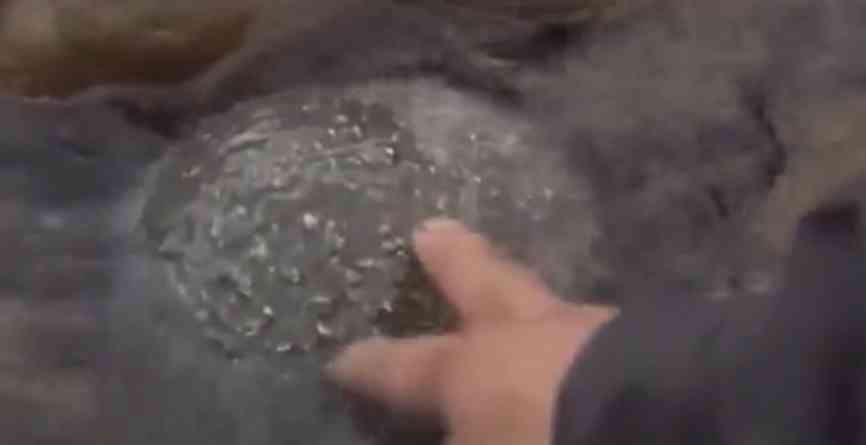 他彎下腰一看,那是一個(gè)橢圓形的石頭,在石頭表面上還長滿了一圈圈的金色顆粒。