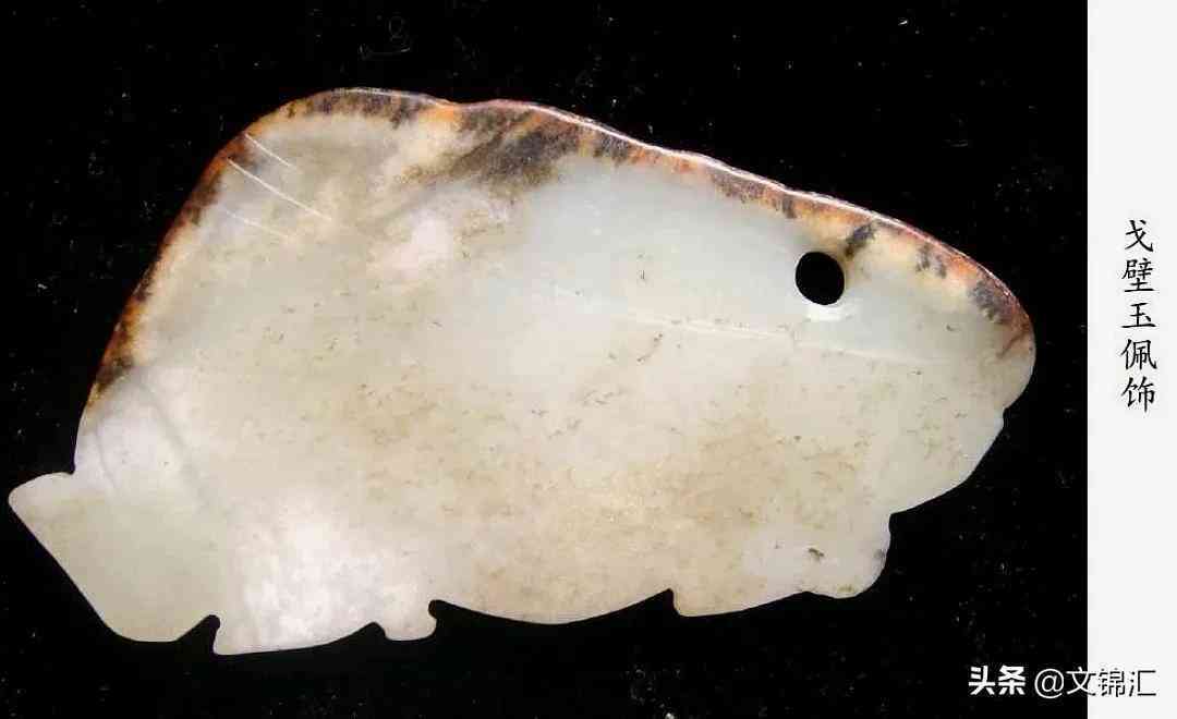 春秋佩飾。此件玉器為青花玉,春秋至戰(zhàn)漢很多玉器中都帶有這種墨點,稱為青花玉,為和田玉質(zhì)。