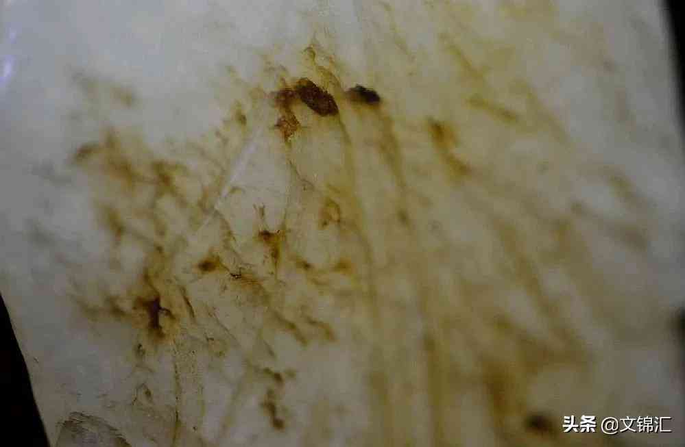 玉器的沁色鑒定也很重要,當然也有沒有沁老舊如新的古玉。玉器的沁與土壤中的環(huán)境有關(guān),或者常與某種物質(zhì)接觸而形成的如下圖: