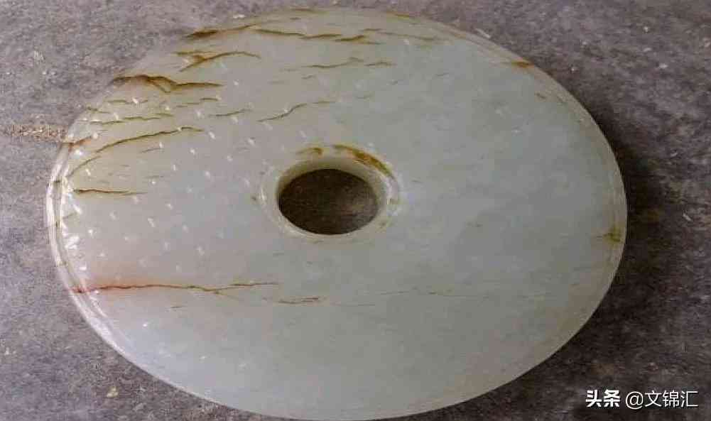 春秋玉璧。此玉璧用料為一種近似松石色的玉料,透光性差,密度高手感厚重,這種玉料只在春秋戰(zhàn)漢時出現(xiàn),產(chǎn)地不詳。