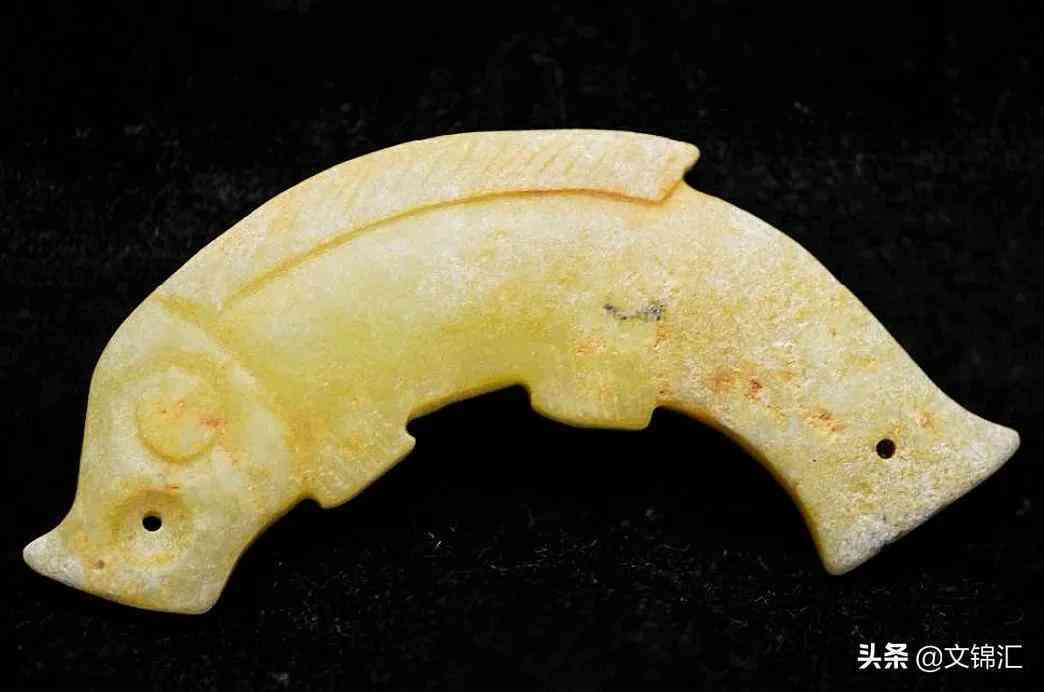 西周玉魚。玉魚表皮現(xiàn)腐蝕痕,斑塊隨腐蝕面積分布,石灰形成的白皮淡淡的覆蓋其上非常自然,內(nèi)里有一種漿汁感透出來。