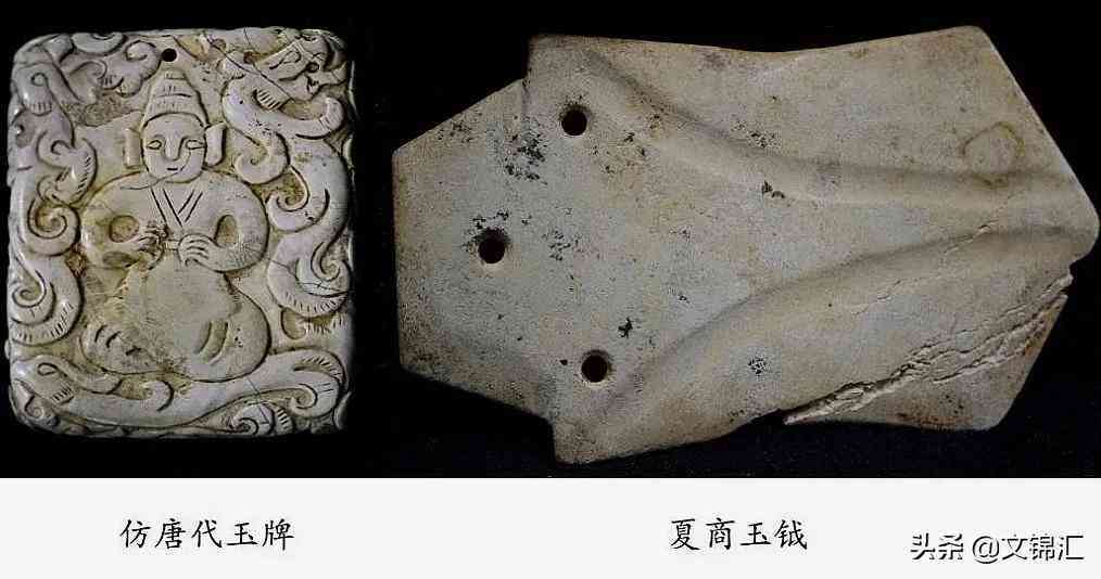 唐代雖然已經(jīng)出現(xiàn)玉牌,但這種方形的牌子還未曾有過。最主要的是其鈣化的表皮,看似已成雞骨白,實則玉內(nèi)部的光氣仍然未散從表皮透了出來,表面也異常光滑沒有受到土咬或腐蝕,內(nèi)部結(jié)構(gòu)瓷實沒有發(fā)生過質(zhì)的變化,這些都表明這是一件年代并不久遠的玉器。與第二件玉鉞相比差異還是比較大的,第二件玉器也是全部鈣化,玉器內(nèi)部的光澤已經(jīng)消散,表皮溫潤不透光也沒有反光,可以看出玉器的內(nèi)部結(jié)構(gòu)疏松,并且布滿了土咬斑痕。