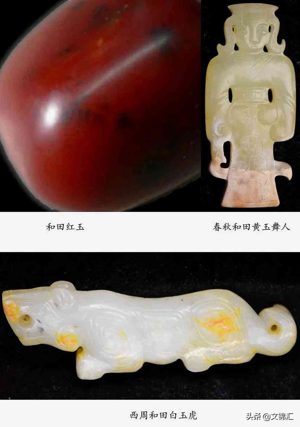 古玉種類的鑒別是十分重要的。古代有一些玉器是某個時代的見證,如紅山文化的河磨料、齊家文化的甘肅玉、商周時期的蛇紋玉、藍田玉、戰(zhàn)國的戰(zhàn)國青、松石綠、紅縞瑪瑙、青花玉、漢代的灰玉、明代的石子玉等如圖: