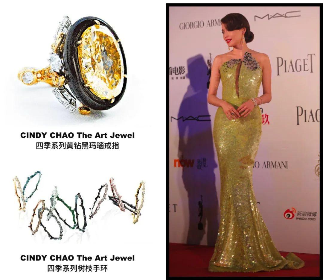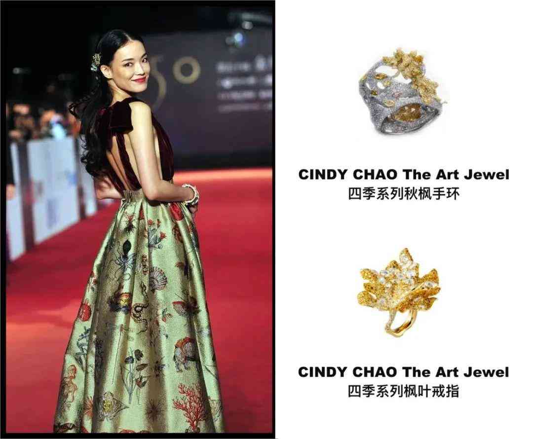 而當(dāng)初舒淇艷壓金馬、成為RCFA年度“全球最美紅毯top20”那套深V大露背禮服裝,搭配的也是CINDY CHAO秋楓手環(huán)及戒指。