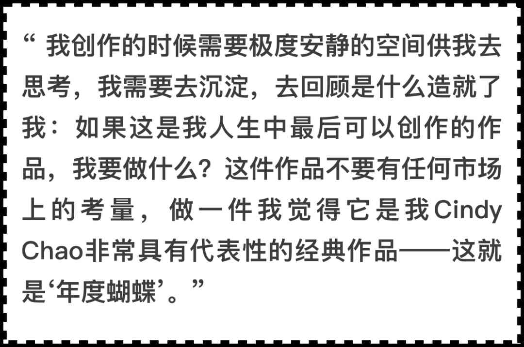 蝴蝶象征著蛻變,也記錄著Cindy Chao的藝術(shù)突破: