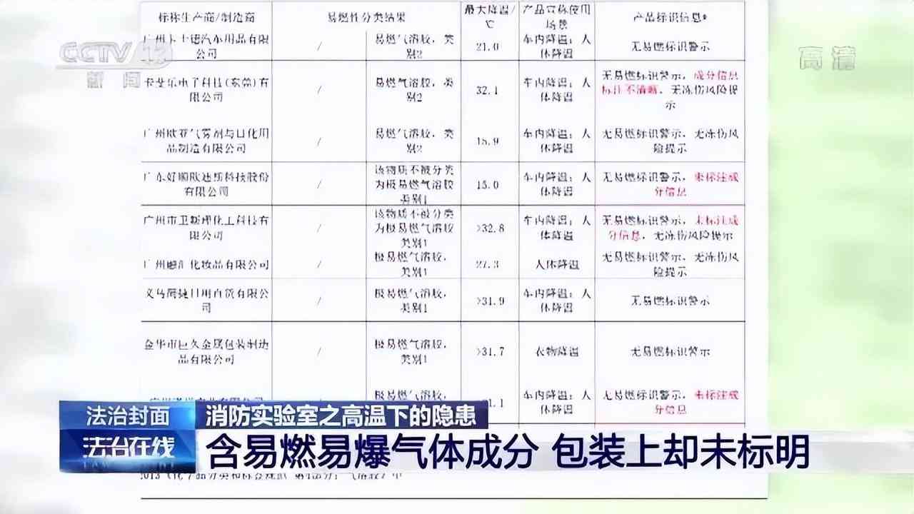 重慶大學(xué)分析測(cè)試中心工程師秦世江:三款產(chǎn)品中有兩款的成分主要是丙烷、異丁烷和正丁烷,它其實(shí)就是我們生活中常見的液化石油氣,含量超過90%,是極易燃易爆的。另外一種含量主要是甲醚,含量超過95%。甲醚也是一種易燃易爆的氣體,它含有神經(jīng)毒性。如果大量吸入容易窒息。