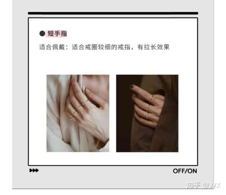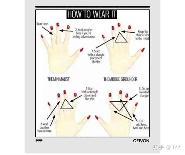 例如,在中指的關(guān)節(jié)上佩戴戒指,在兩邊手指的根部佩戴戒指。