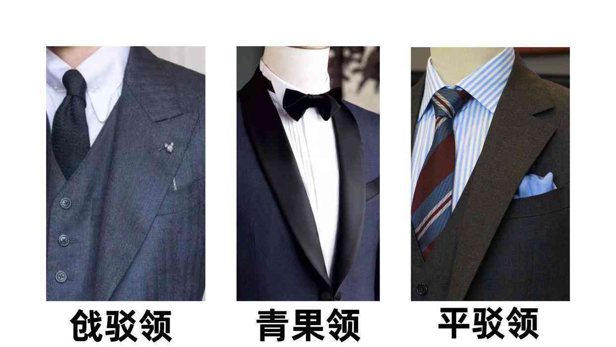 西裝領(lǐng)型:平駁領(lǐng)、戧駁領(lǐng)、青果領(lǐng)(禮服款用得較多)