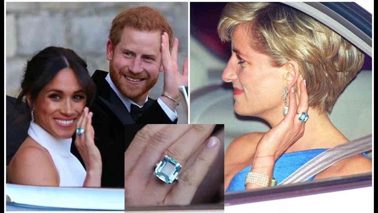 在婚禮上,梅根·馬克爾戴著戴安娜與查爾斯離婚后給自己買的那枚海藍寶石戒指。凱特收到了戴安娜的藍寶石訂婚戒指。