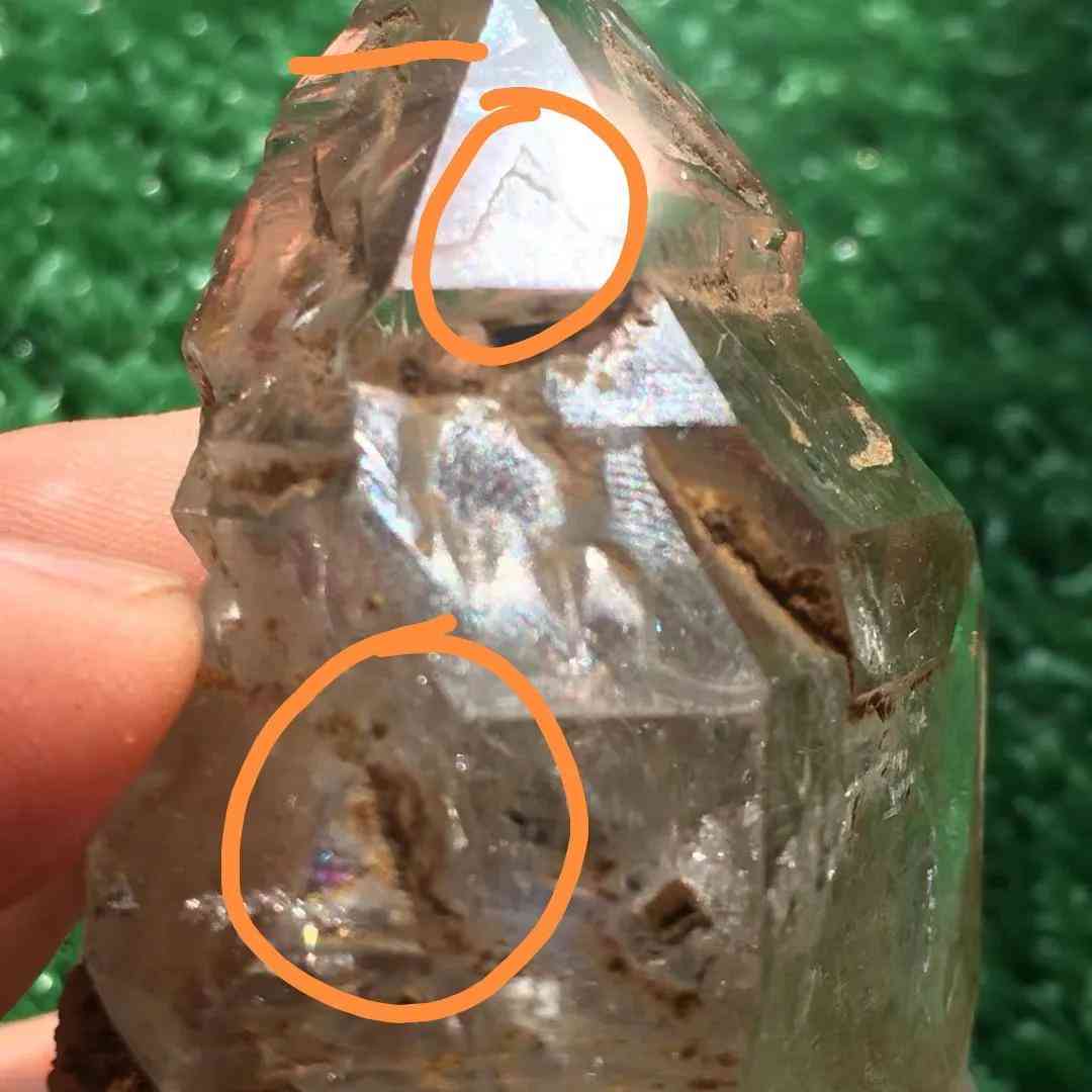 我在這里再補(bǔ)充幾點(diǎn):水晶原石的表面有三角形印記,小波浪印記,指紋圈印記,一層一層的三角形或圓形孔洞。