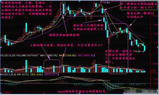 顯現(xiàn)上漲也同樣。當波拉升起來時(MACD上顯現(xiàn)為大紅柱)我們都不應考慮出貨,而應等其波回調過后,第二次再沖高時,當MACD上顯現(xiàn)出“小紅柱”(紅柱比前面的大紅柱明顯要小)此時意味著上漲動力不足,這時我們方考慮離場出貨。這就是所謂的賣小。