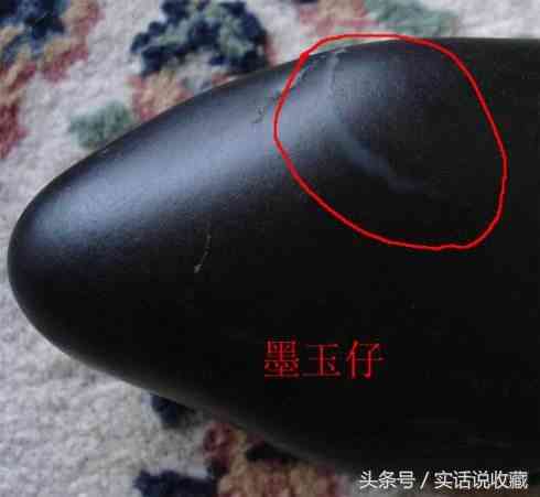 若論外觀,墨碧玉全身漆黑,表面光滑,和墨玉極其相似,但它卻是碧玉。碧玉也是新疆軟玉的一個(gè)品種,它本來(lái)是綠色的,因?yàn)楹?,且在喀拉喀什河中長(zhǎng)期風(fēng)化,使外表漆黑,很像墨玉。它的鑒別方法也很容易,因?yàn)楹啵群吞镉裆攒浺恍?,但在薄片情況下,迎光照視,卻是很明顯的綠地墨斑。墨碧玉也是應(yīng)該珍惜收藏的好品種。