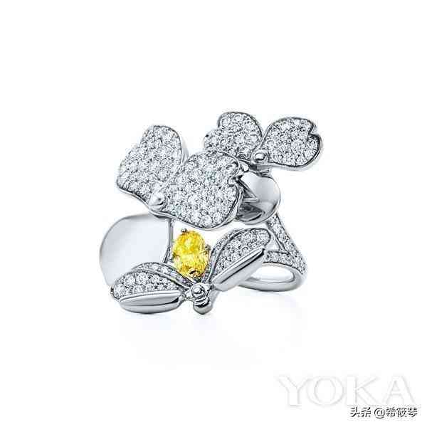 Tiffany & Co. 蒂芙尼Paper Flowers?花韻系列螢火蟲造型鉑金鑲嵌鉆石與黃鉆戒 圖片來自品牌