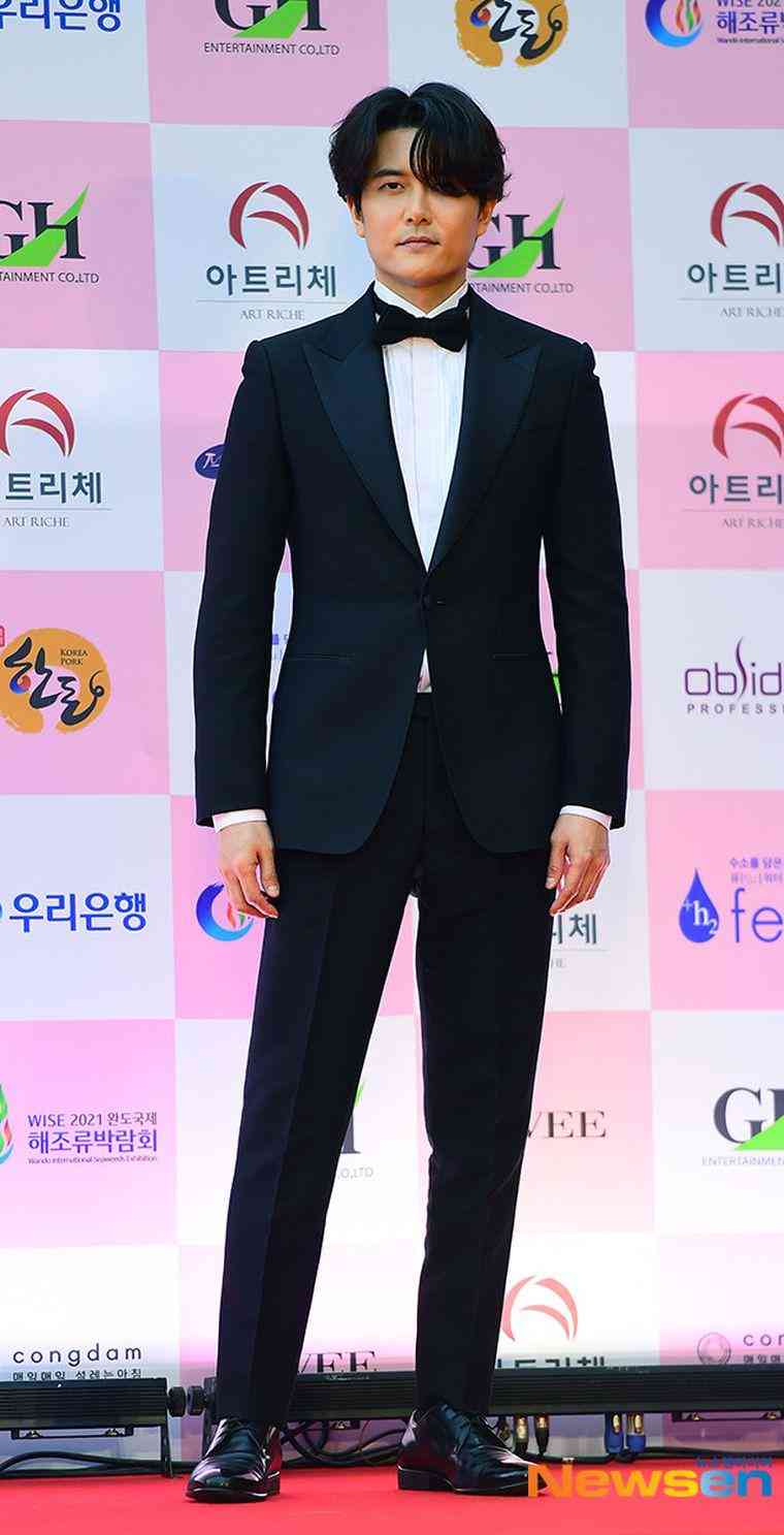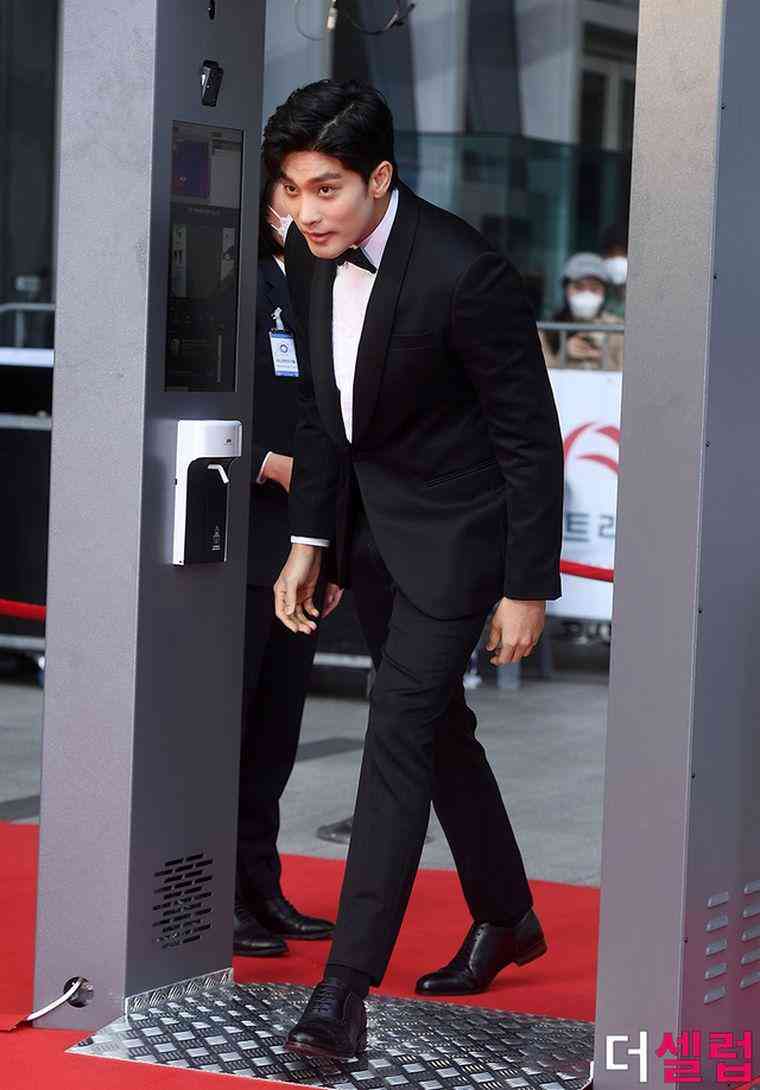 男星們主要由正裝配領結出現(xiàn),丁海寅給自己配了粉紅色,帥氣踏上紅毯。