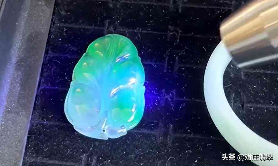 第四,打紫外線光看有沒有熒光反應(yīng)。翡翠出現(xiàn)熒光反應(yīng)的可能性很多,一是b貨的填充物質(zhì)環(huán)氧樹脂,在熒光燈下會發(fā)出熒光;二是拋光粉太多沒清洗干凈引起的熒光反應(yīng);三是石性雜質(zhì)太多引起的熒光反應(yīng)。這三種情況無論發(fā)展哪一種情況都讓翡翠價值大打折扣。