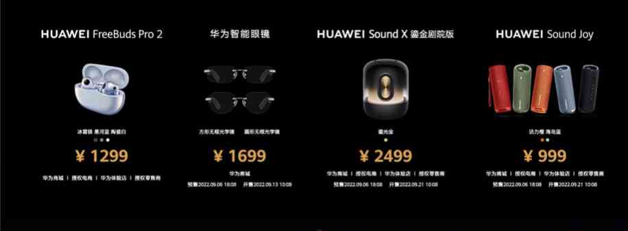 分別是FreeBuds Pro 2,華為智能眼鏡、SoundX劇院版和Sound Joy。