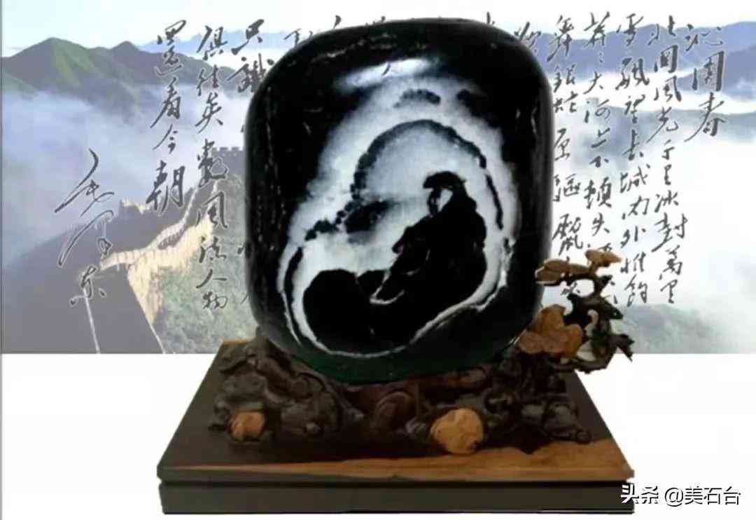 說實話,王美人給自己688萬的奇石取名《沁園春》,這是一方岷江墨玉石,石頭表面有個人物,極為形象。