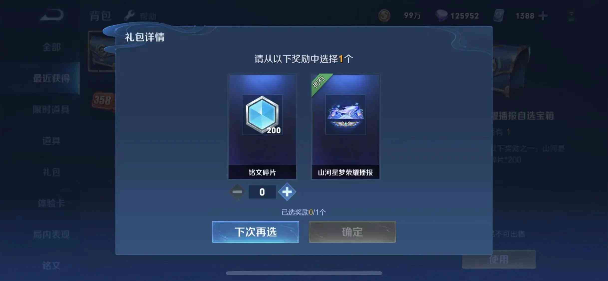 最后一個(gè)箱子是抽滿10次給山河星夢播報(bào),應(yīng)該大部分玩家都有這玩意,別浪費(fèi)鉆石。(雖然鉆石也沒用)