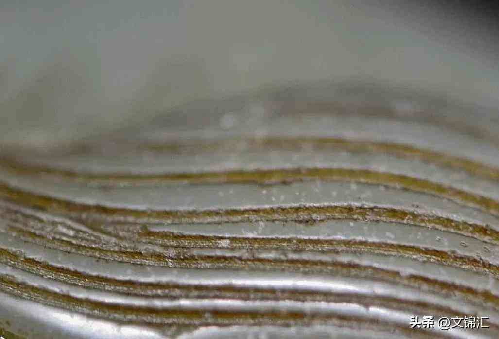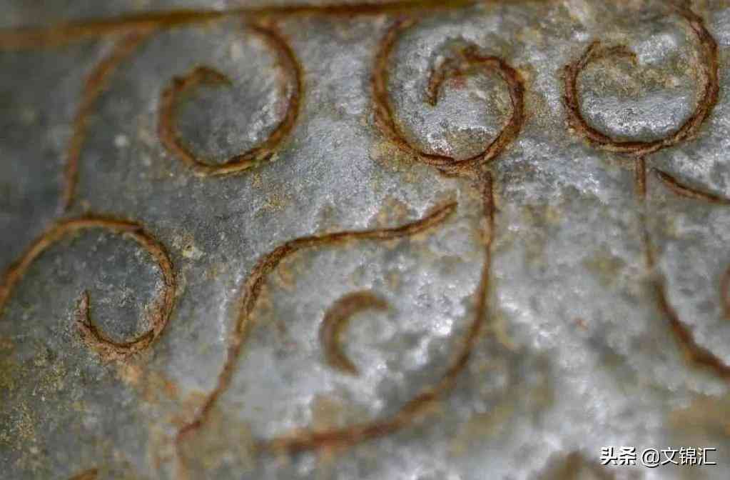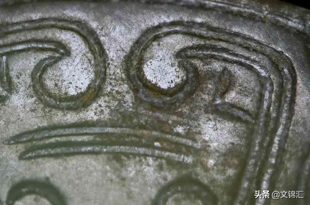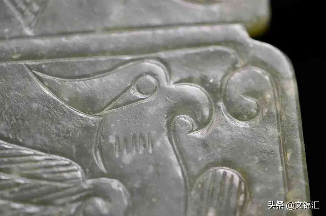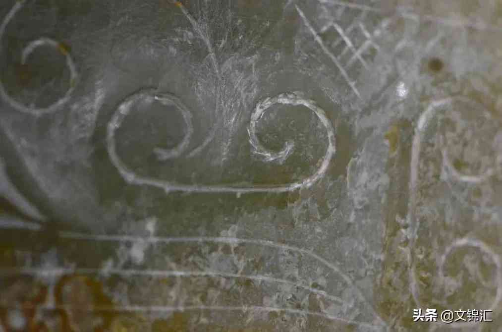 西周玉器細(xì)部圖。工痕底槽的包漿與光澤一致,砣痕轉(zhuǎn)接留下的銼刀銜接緊密,和砣具停轉(zhuǎn)所表現(xiàn)出陰線寬窄自然過渡的變化,以及砣具來回轉(zhuǎn)動(dòng)留下高低不平的磨砂底。