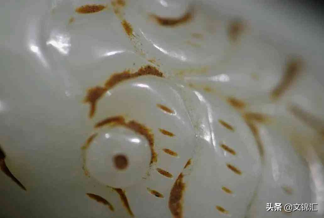鈣化。是由地?zé)嵊绊懚纬?,形成時(shí)間二千年以上。古玉的鈣化是從里到外的一個(gè)過程,表面呈現(xiàn)出潤澤的光亮,現(xiàn)在很多偽器,多是以酸腐蝕而成,表面干澀過渡不自然,像是人用毛筆甩上去的點(diǎn)狀物,而且沒有深入肌里,有時(shí)出現(xiàn)起皮現(xiàn)象。