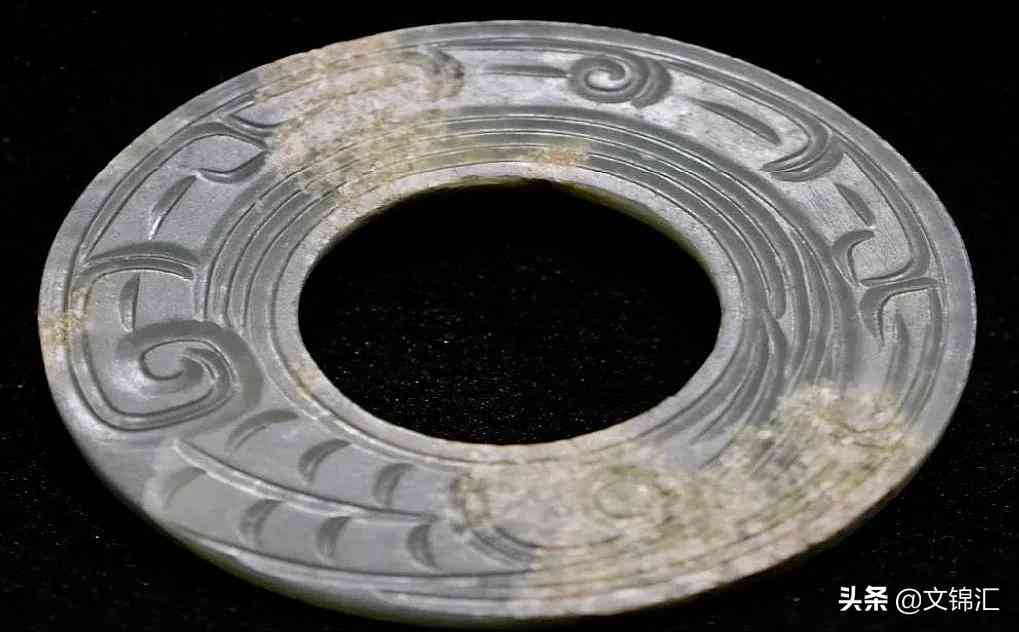 春秋玉璧。此玉璧用料為一種近似松石色的玉料,透光性差,密度高手感厚重,這種玉料只在春秋戰(zhàn)漢時(shí)出現(xiàn),產(chǎn)地不詳。