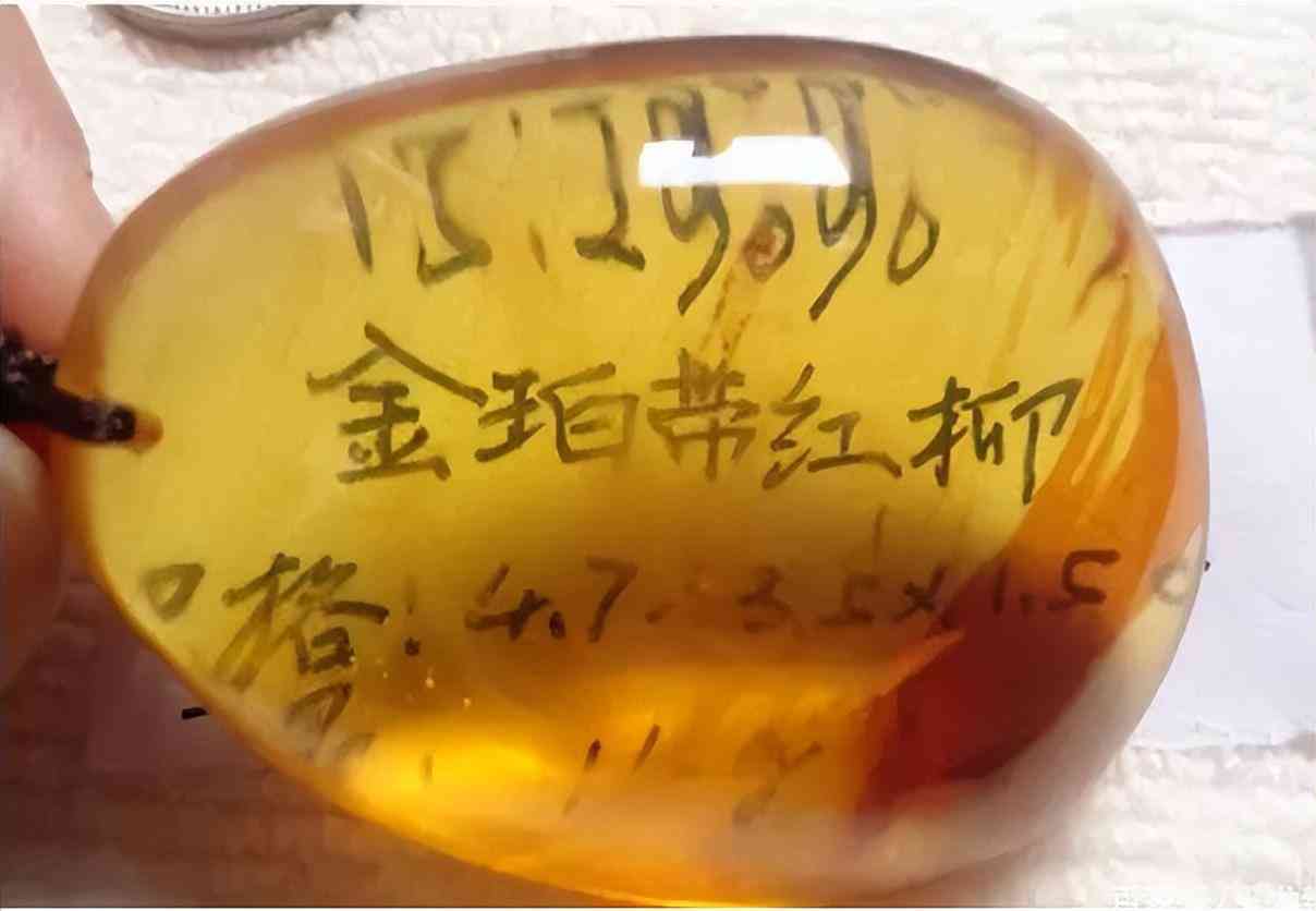 金珀的珀體顏色為金黃色,黑底下泛藍(lán)色機(jī)油光少數(shù)泛藍(lán)綠色機(jī)油光;個別琥珀在邊緣微泛紅色;熒光白藍(lán)色。
