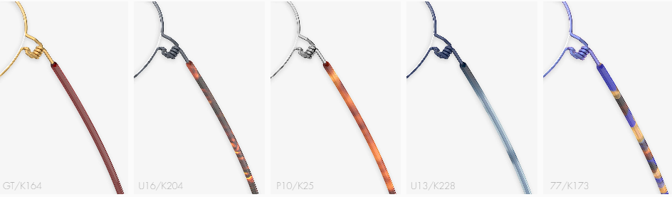 Air titanium rim系列還推出醋酸纖維(板材)內(nèi)框設(shè)計的款式, 為簡約設(shè)計帶來更多的對比和深度。醋酸纖維(板材)內(nèi)框在保留鈦絲鏡架的所有優(yōu)點的同時, 使您的鏡架更為堅固。