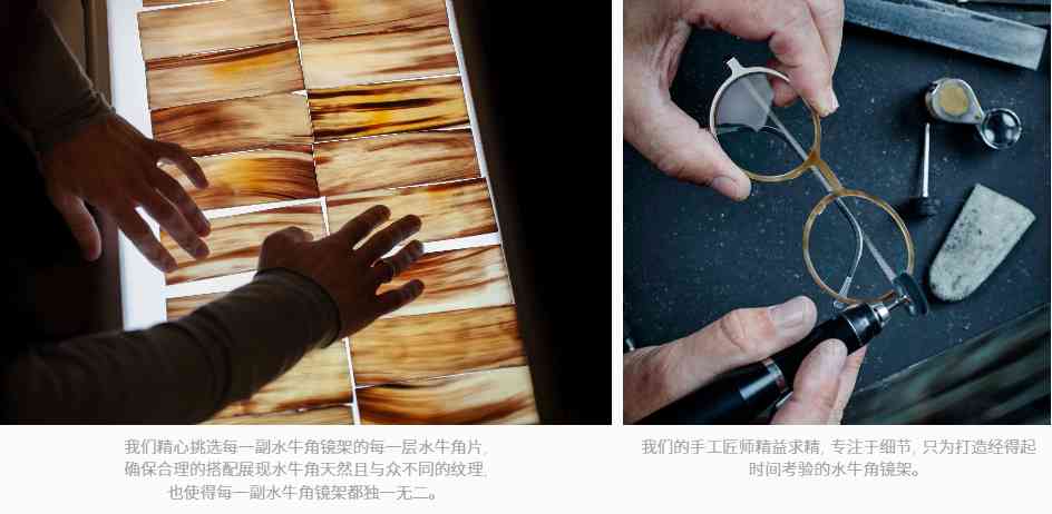 將水牛角與優(yōu)質(zhì)木材巧妙融為一體, 互相襯托彼此的出眾之美。水牛角與優(yōu)質(zhì)木材皆取自自然, 質(zhì)地極為精細。兩種上乘材質(zhì)打造精美鏡架結(jié)構(gòu),令每一副tr?+buffalo titanium眼鏡都與眾不同,精美絕倫。