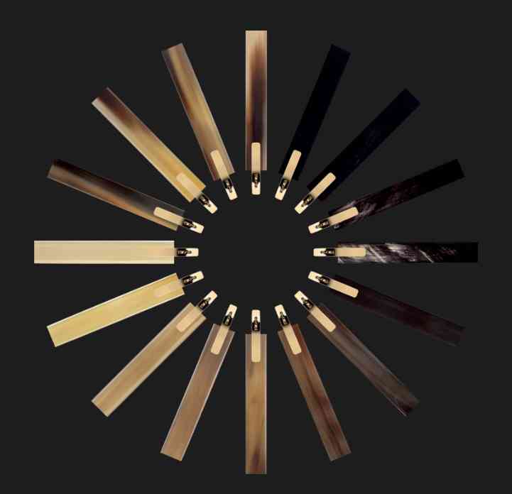 獨特奢華的牛角系列鏡架以多層天然牛角,通過不少于152道手工工序制作,以確保展現(xiàn)出牛角細膩的天然色澤和紋理。這意味著每一副眼鏡都是真正的獨一無二。鏡架的鏡腿、鉸鏈和鼻須部分則由超輕的純鈦制成, 使得光澤細膩的牛角鏡架變得更穩(wěn)定、易于調(diào)節(jié)和佩戴更舒適, 同時也帶來更時髦和現(xiàn)代的設(shè)計感。