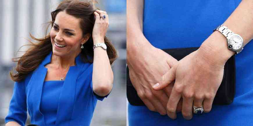 雖然這只Cartier腕表并不是戴安娜王妃的遺物,但價值同樣珍貴。這只手表屬于Ballon Bleu de Cartier系列,鑲嵌了凸圓型藍寶石,于訂婚鉆戒上的寶石相稱,是威廉王子Prince William送給凱特王妃Kate Middleton的結(jié)婚三周年禮物。