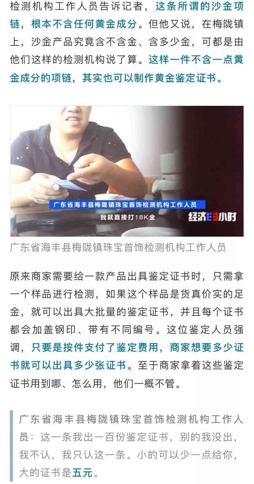 隨后記者來到一家名為“金泰盛”的首飾廠,工廠的工作人員直言不諱地告訴了記者行業(yè)里一個(gè)公開的秘密。