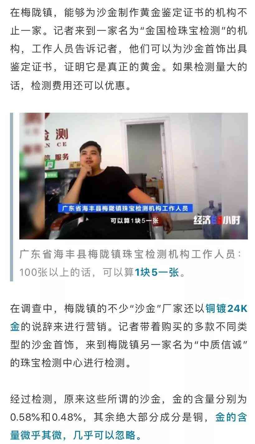 廣東省海豐縣首飾廠家:你去外面賣,當(dāng)黃金賣也行。有人就說沙金是黃金,賣幾百塊錢。