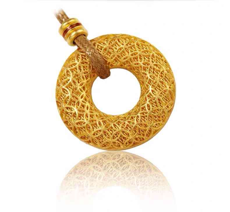 平安扣也稱懷古、羅漢眼,可祛邪免災(zāi),保出入平安。平安兩字寓意明確,表達(dá)了人們樸素美好的愿望。平安扣面以花絲工藝和鏨刻工藝精制出連綿的古銅錢形狀。工藝精湛 玲瓏別致,古銅錢寓意避邪保平安。是一款適合所有人佩戴的百搭型掛墜。