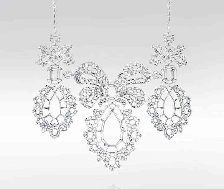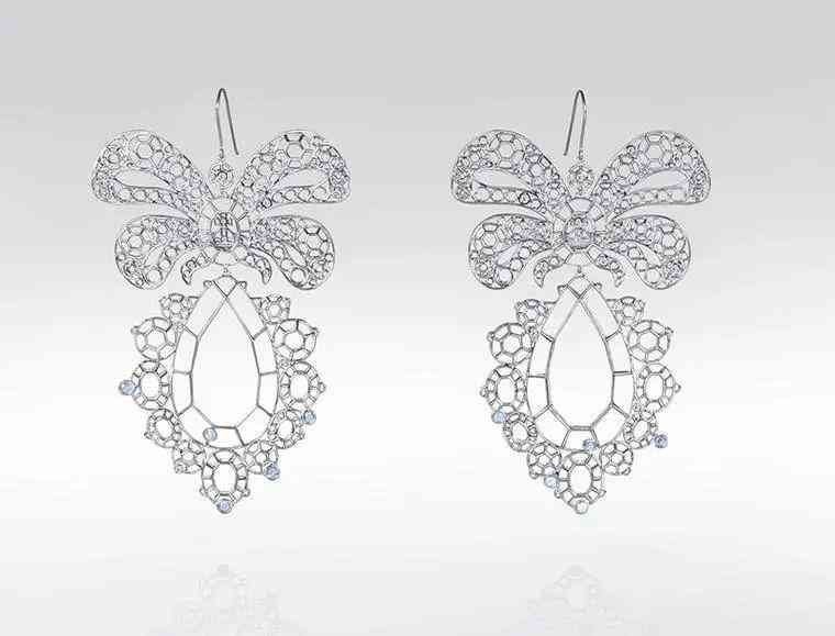 但當(dāng)她在時(shí)尚圈闖出名號(hào)后,她的時(shí)裝珠寶就做得風(fēng)生水起,由飛碟與冠冕的奇妙組合不知道打動(dòng)了多少集美的心。之后她也推出過 Gainsborough Palladium jewellery 系列,以英國 18 世紀(jì)畫家 Thomas Gainsborough 筆下的貴族少女肖像為靈感,解構(gòu)了畫像中的宮廷珠寶,用輕盈的鈀金打造空置寶石位置的冠冕,只用鉆石和藍(lán)寶石做細(xì)微的點(diǎn)綴,諷刺貴族的膚淺,權(quán)勢(shì)的虛幻。