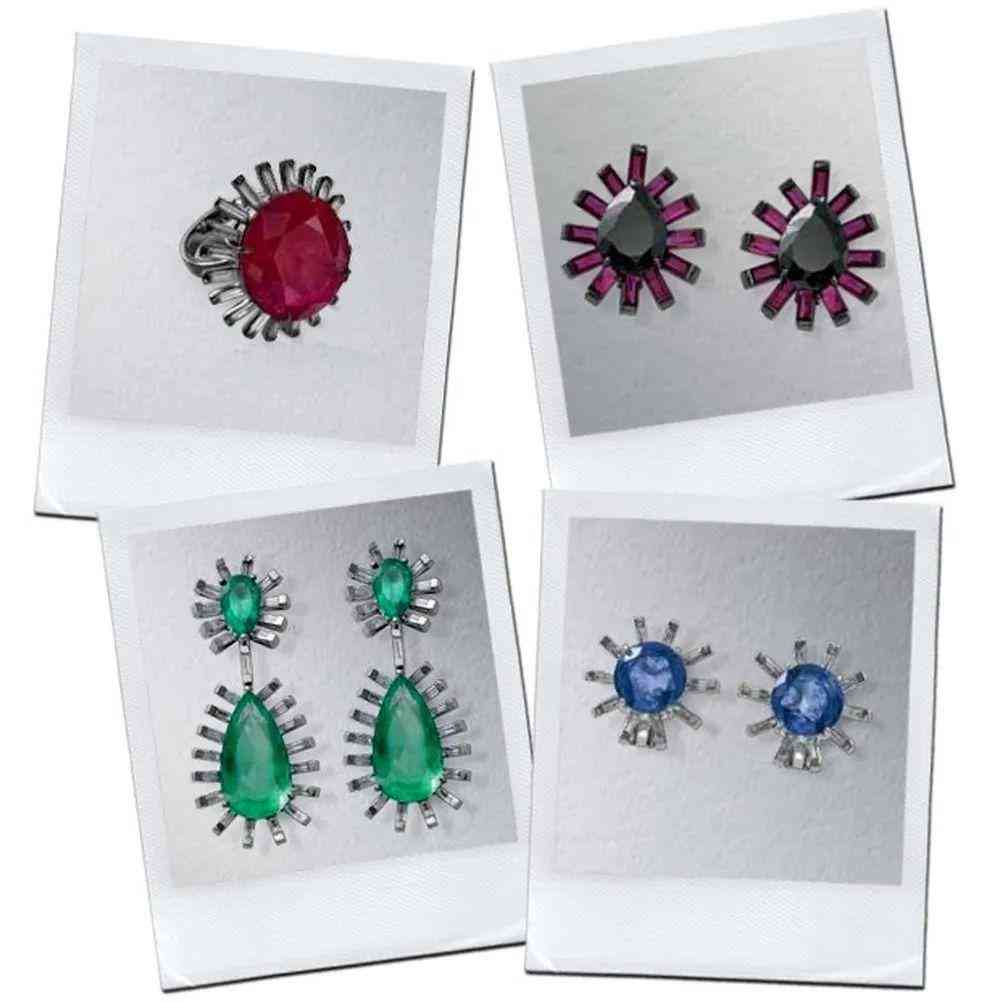 巴西的珠寶設(shè)計(jì)師 Jack Vartanian 熱愛搖滾樂,因此有大量的設(shè)計(jì)以鏈條、尖刺等朋克元素為靈感。他的 Punk Gala 系列用藍(lán)寶石、紅寶石、祖母綠和帕拉伊巴碧璽為主石,卻用鉆石圍繞它們打造朋克的尖刺。他還擅長運(yùn)用黑色材質(zhì),比如黑色瑪瑙、鍍黑銠金、黑鉆等材質(zhì)來打造耳釘、戒指。當(dāng)然,他還喜歡金屬鉚釘,充滿力量感的集合矩陣展示。