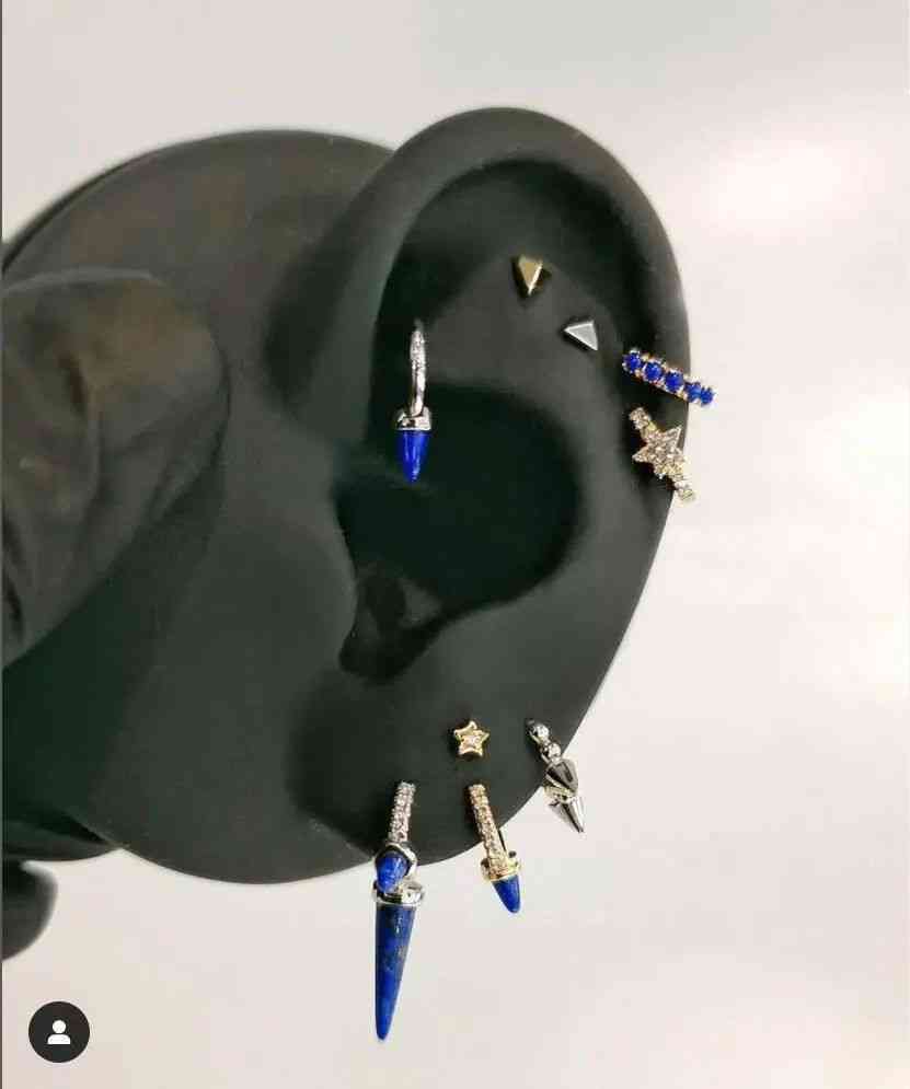 美國珠寶設(shè)計(jì)師 Maria Tash ,這位土生土長的紐約客在倫敦求學(xué)的時(shí)候深受朋克精神所影響,她將耳飾作為主陣地,將各種耳釘、耳環(huán)的排列組合視為一種個(gè)性的表達(dá),并開創(chuàng)了整套的耳朵珠寶——“Curated Ear”概念。