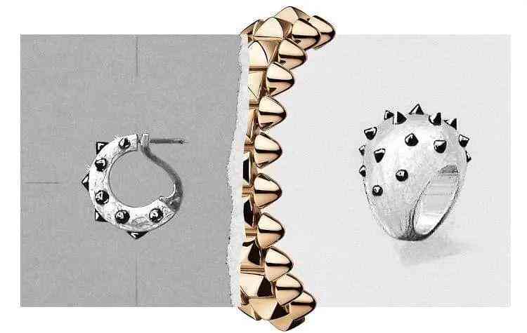 朋克風(fēng)的前衛(wèi)和激進(jìn)是它鮮明的風(fēng)格符號(hào),但當(dāng)它融入到珠寶中,設(shè)計(jì)師們就有辦法讓它展現(xiàn)出自己理解的那一面,可能是有趣又個(gè)性的“反差萌”,也可能是硬朗簡潔的“力量感”,把這些尖牙、荊棘、鉚釘變得更適合女生佩戴,更契合日常搭配,成為年輕人對(duì)那種抗?fàn)幘竦闹戮?,展現(xiàn)自我個(gè)性的選擇。
