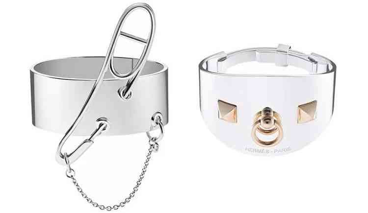 愛馬仕就曾經(jīng)采用安全別針作為創(chuàng)意靈感,他們的 Cha?ne d'Ancre Punk 將它和錨鏈融為一體,設(shè)計(jì)師將別針「別在」穿孔的鐲壁上,用別針作為項(xiàng)鏈的鏈節(jié),或是直接用別針的彎折作為指尖戒,讓源自馬術(shù)的珠寶系列增添了先鋒的氣質(zhì)。