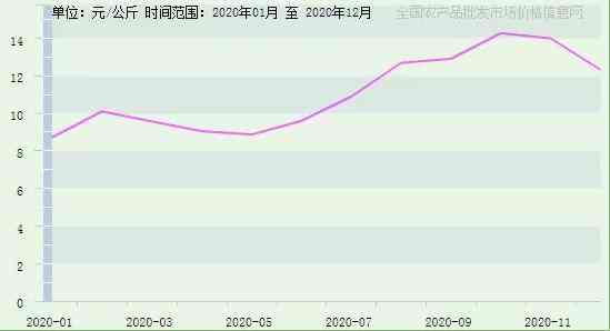 為什么今年采購(gòu)商對(duì)生姜關(guān)注度大幅度降低呢?其中生姜的價(jià)格出現(xiàn)上漲是主要原因。據(jù)全國(guó)農(nóng)產(chǎn)品批發(fā)市場(chǎng)價(jià)格信息網(wǎng)數(shù)據(jù)顯示:2020年12月生姜批發(fā)市場(chǎng)價(jià)格為12.32元/公斤,與去年同期的8.73元/公斤相比,同比漲幅四成以上。