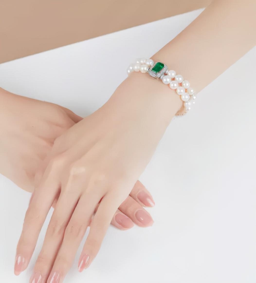 下面再來看看這件,3.92 克拉天然贊比亞未經(jīng)處理祖母綠配珍珠及鉆石手鏈,鑒定為天然祖母綠,3.92 克拉,產(chǎn)地贊比亞,未經(jīng)處理,正圓珍珠有 40 米,直徑 7.1-7.5 mm。