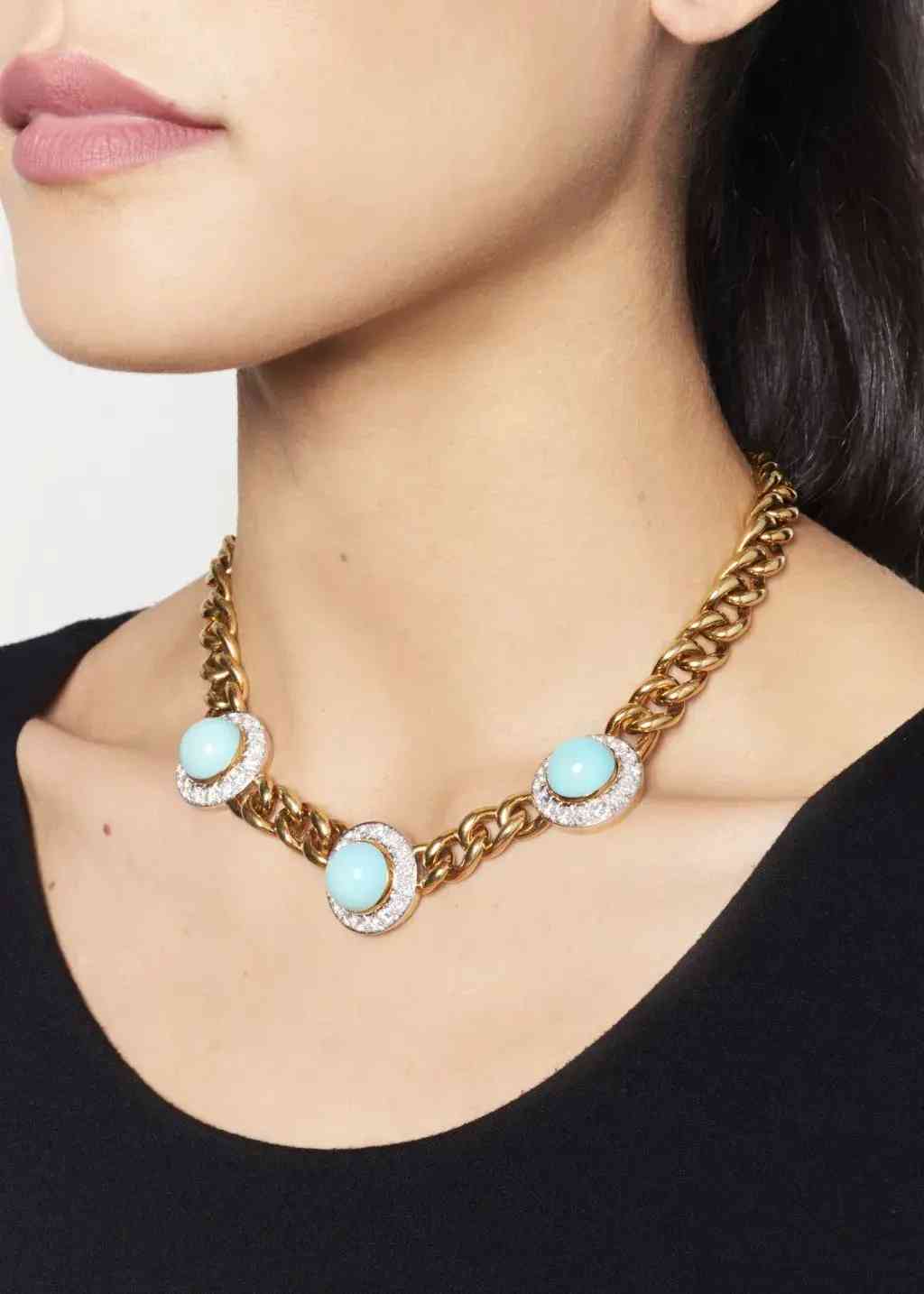 綠松石、鉆石、金項鏈