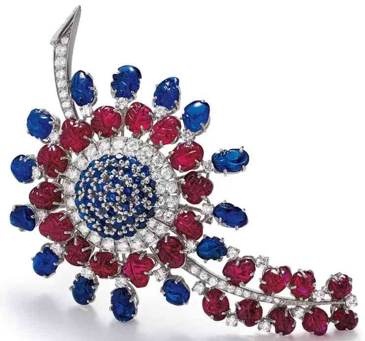 紅寶石、藍寶石、鉆石、鉑金配 K 金胸針