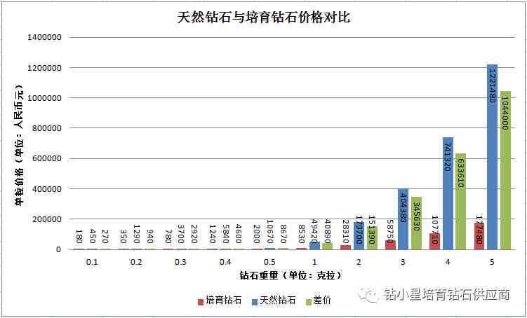 首先我們根據(jù)目前天然鉆石和培育鉆石的市場價格做了對比圖,其中綠色的的豎條代表兩者之間的差價,我們可以很清楚的看到,從1克拉大小開始,綠色豎條在快速變長,表明克拉以上的級別,天然鉆石與培育鉆石拉開了明顯的差距,具體原因有以下幾點(diǎn):
