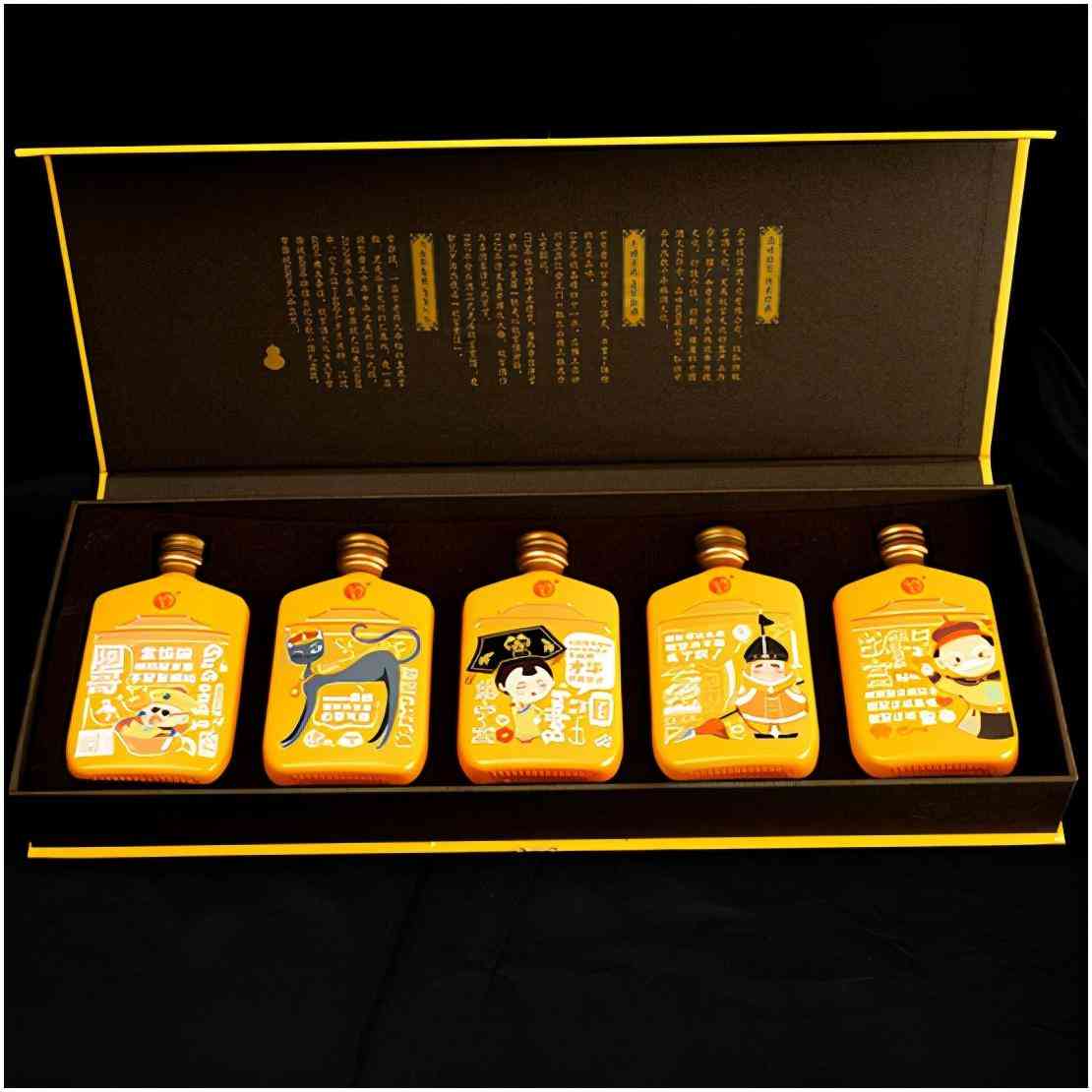 故宮文創(chuàng)酒,用時尚的方式把傳統(tǒng)的文化重新流行起來。有五款一套,瓶上印有俏皮生動的話語,深受年輕人的喜歡。