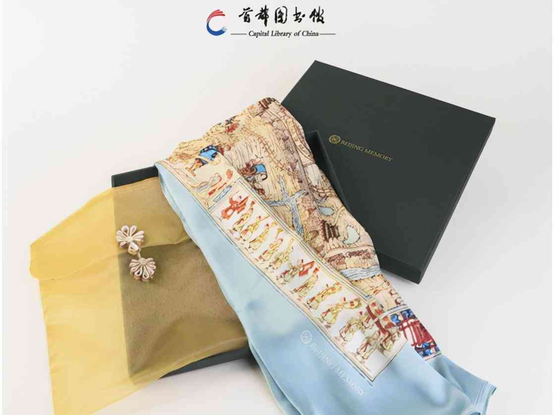 絲巾依托首都圖書館館藏美國弗蘭克?多恩于1936年繪制的地圖進(jìn)行再創(chuàng)造,具體展現(xiàn)了民國時期北平城的歷史生活場景,具有極高的史料價值,兼具藝術(shù)性、實用性和宣傳性。使用真絲材質(zhì),手工卷邊,雙面噴印。