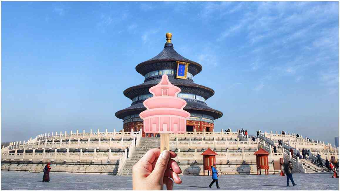 祈年殿造型的景點打卡雪糕??谖妒翘靿录净谖?。顏值和美味集于一身。雪糕桿上還有祈福詞語,增強(qiáng)互動性。