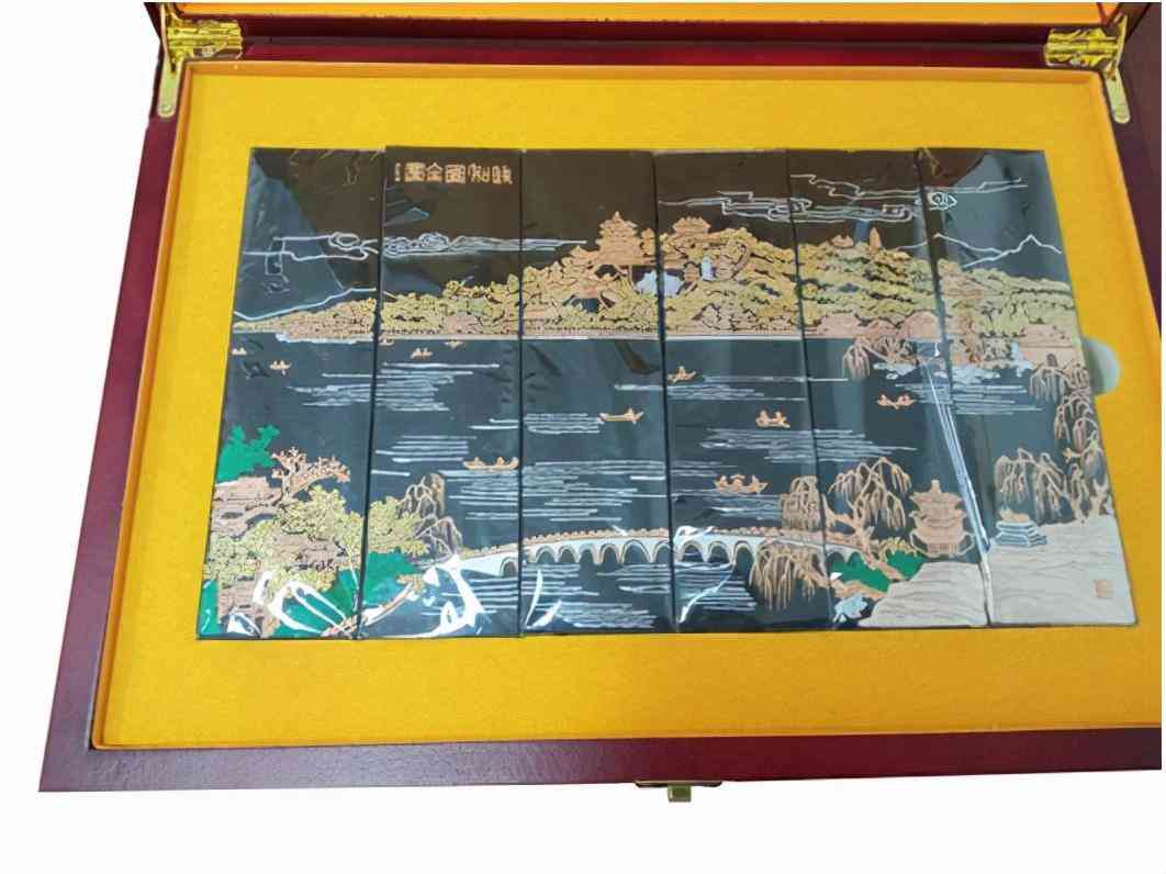 圖樣選自頤和園佛香閣昆明湖全景,采用紙印刷工藝,觸感良好。夏令之物,引來絲絲清涼。局部勾金線條,手工裱合及掃金工藝,顏色鮮亮。古樸雅致,亦是造型美觀的藝術(shù)裝飾品。